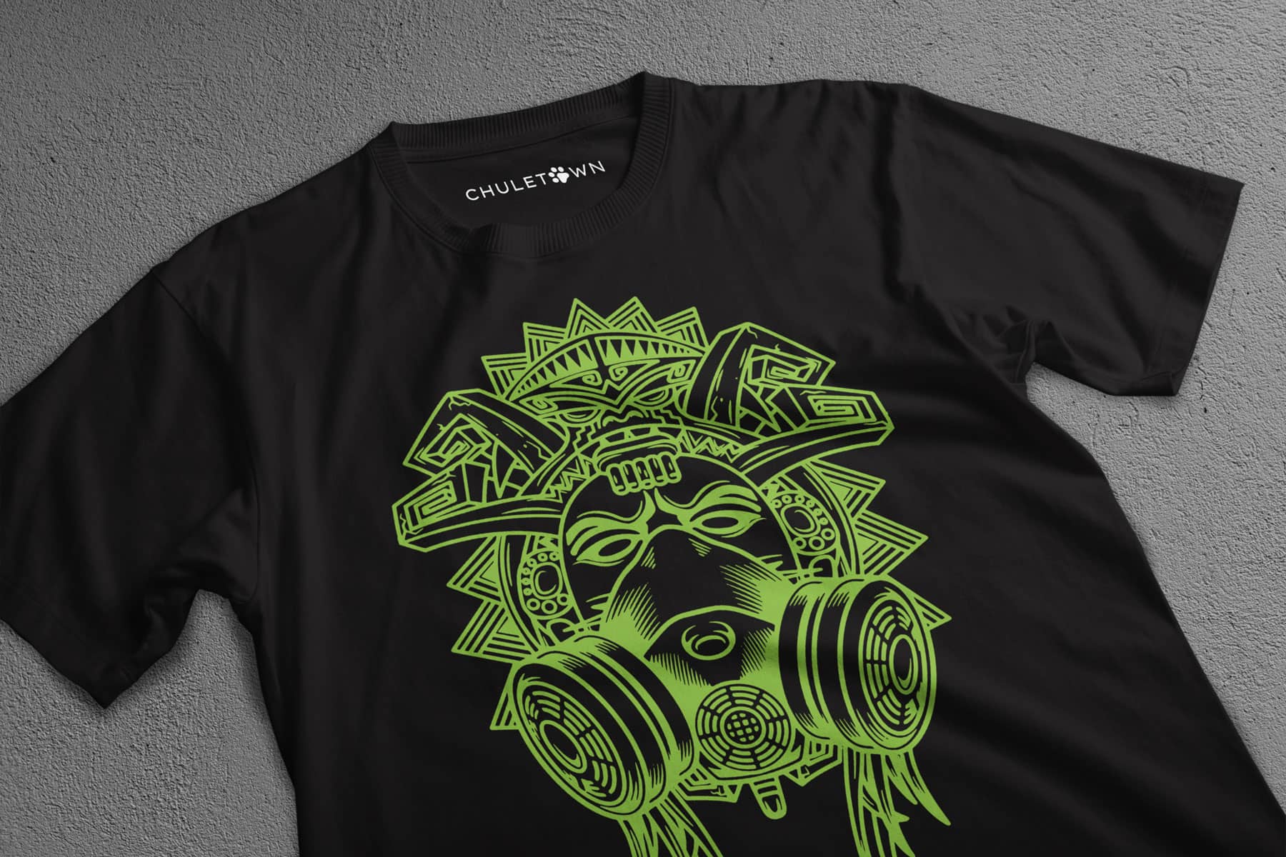 Estampado mascara azteca verde neon
